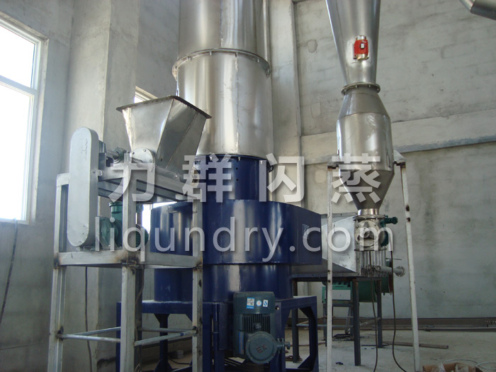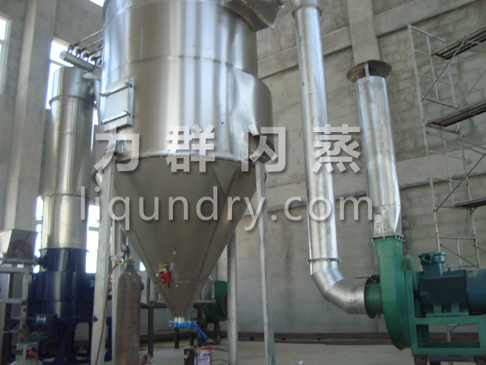 由于該產(chǎn)品的顆粒度要求在20-80目左右所以閃蒸干燥機(jī)的粉碎部分要做相應(yīng)的調(diào)整,不能采用傳統(tǒng)的結(jié)構(gòu)而且傳動(dòng)電機(jī)的功率和轉(zhuǎn)速需采用變頻或調(diào)速儀控制。整套設(shè)備的進(jìn)風(fēng)溫度控制在150-160℃,出風(fēng)溫度控制在70℃左右。物料有一定的粘性加料部分需采用雙螺旋加料機(jī),整套設(shè)備在調(diào)試過(guò)程中一次性試車(chē)成功,一切技術(shù)要求全部達(dá)到設(shè)備運(yùn)行穩(wěn)定。